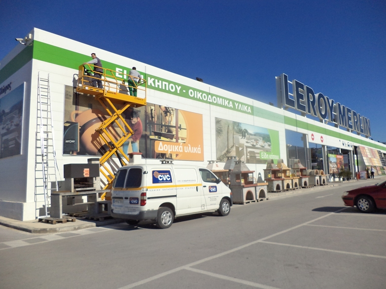 Συντήρηση Όψεων των κτιριακών εγκαταστάσεων του καταστήματος Leroy Merlin στην Πυλαία Θεσσαλονίκης (επαναβαφές όψεων).
